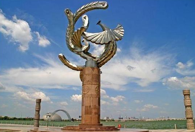 鳳凰是中國(guó)人民喜愛的吉祥之鳥。聊城是一個(gè)與鳳凰有著深遠(yuǎn)淵源的城市。聊城古城區(qū)呈正方形,邊長(zhǎng)1公里,平面結(jié)構(gòu)嚴(yán)謹(jǐn)、規(guī)整,以光岳樓為中心,分東、西、南、北四條街,呈棋盤式道路網(wǎng)架。四周筑有高大堅(jiān)固的城墻,周圍環(huán)以護(hù)城河,四周設(shè)有城門,門外設(shè)有甕城,四個(gè)甕城各異,南關(guān)島如鳥首引頸而飛,東西關(guān)為鳥翼,北關(guān)為鳥尾,根據(jù)其形狀,似一只"鳳凰",所以聊城有"鳳凰城"之說。"鳳"是聊城的象征。舞鳳廣場(chǎng)也取意于此,同時(shí)與北邊的騰龍廣場(chǎng)相呼應(yīng),形成了中國(guó)傳統(tǒng)哲學(xué)中陰陽(yáng)平衡的格局。